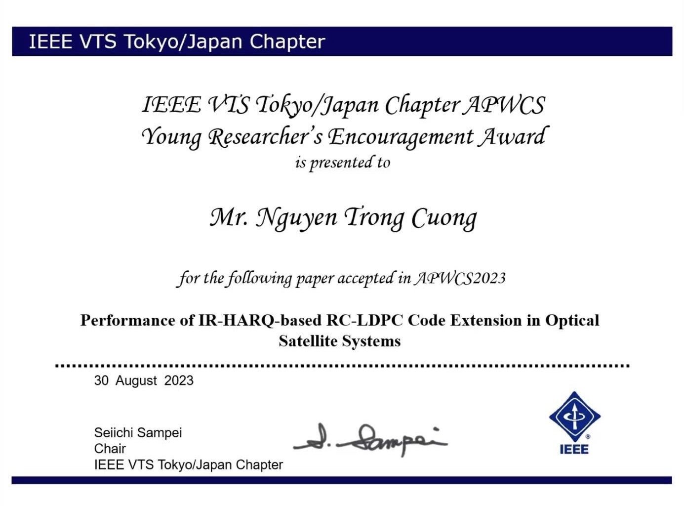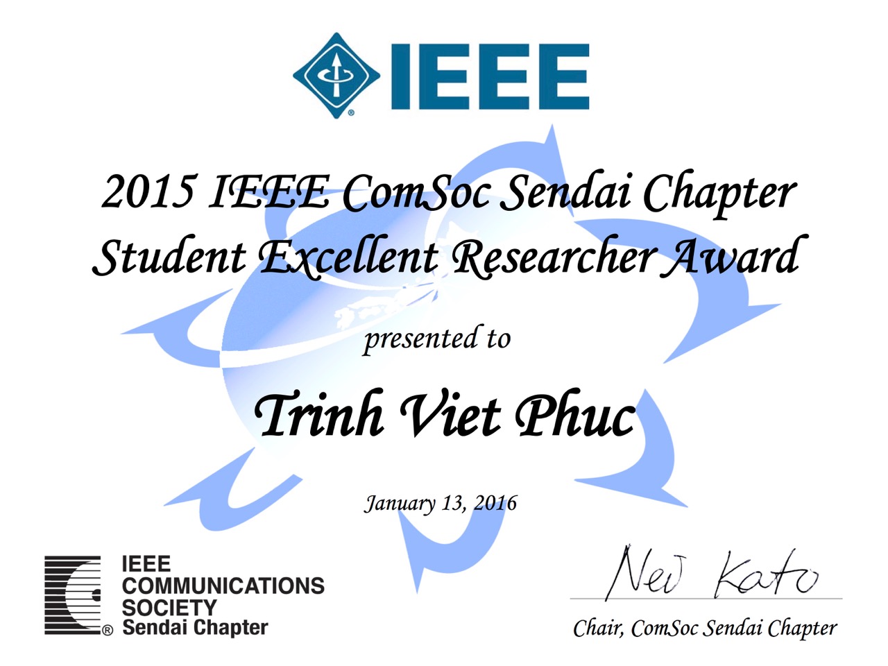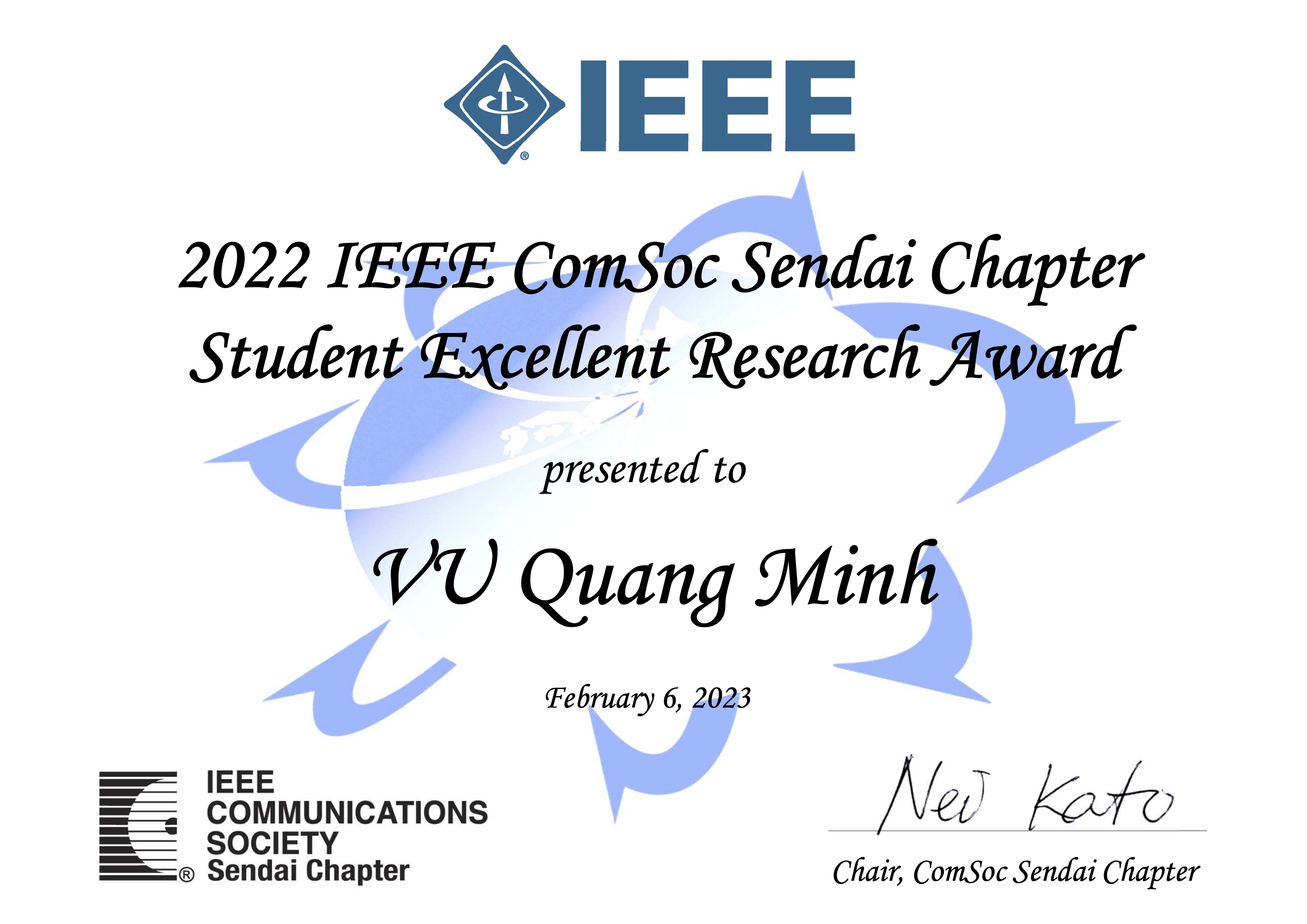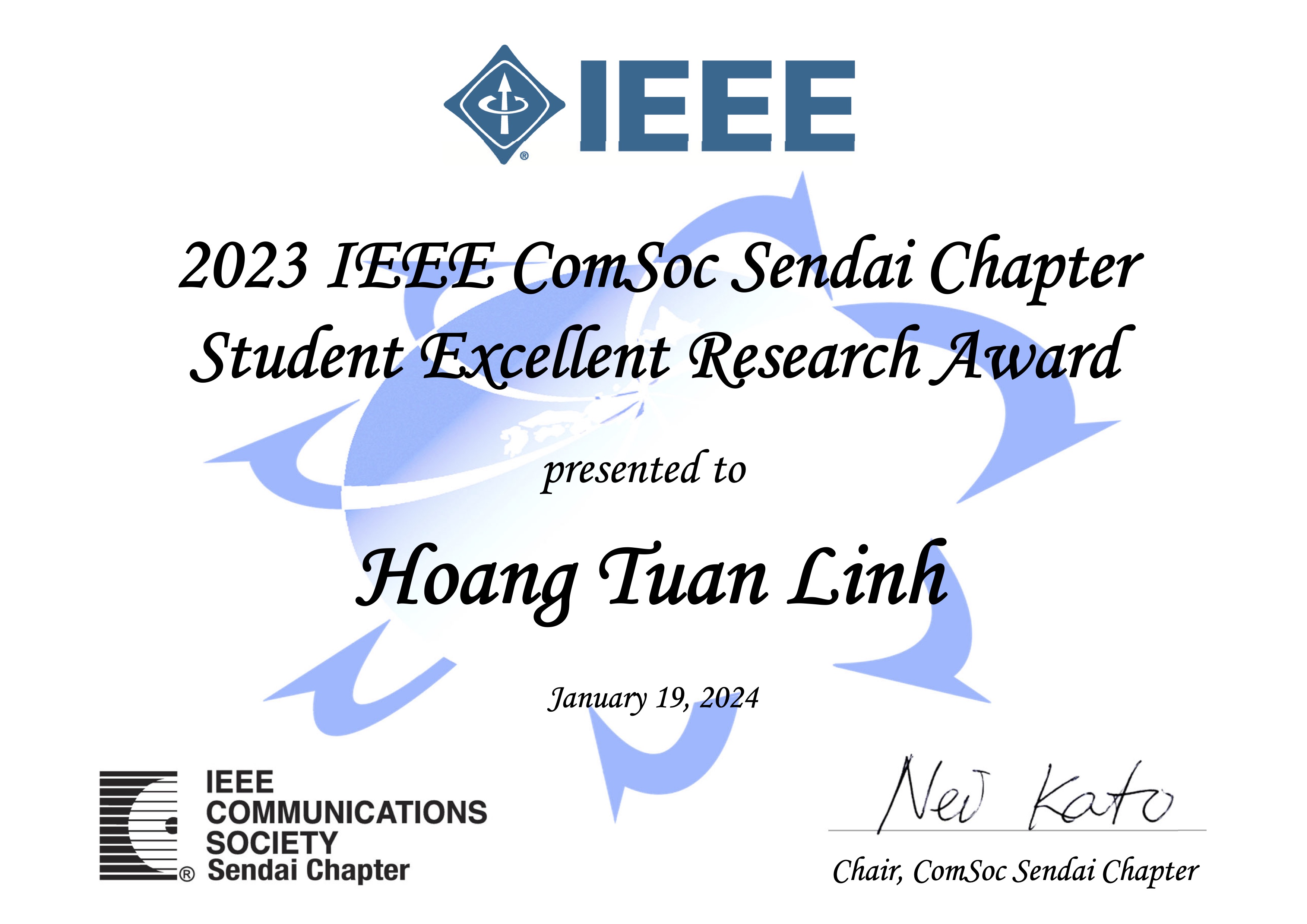 wins the 2023's IEEE ComSoc Sendai Chapter Student Excellent