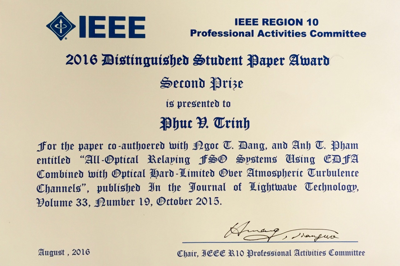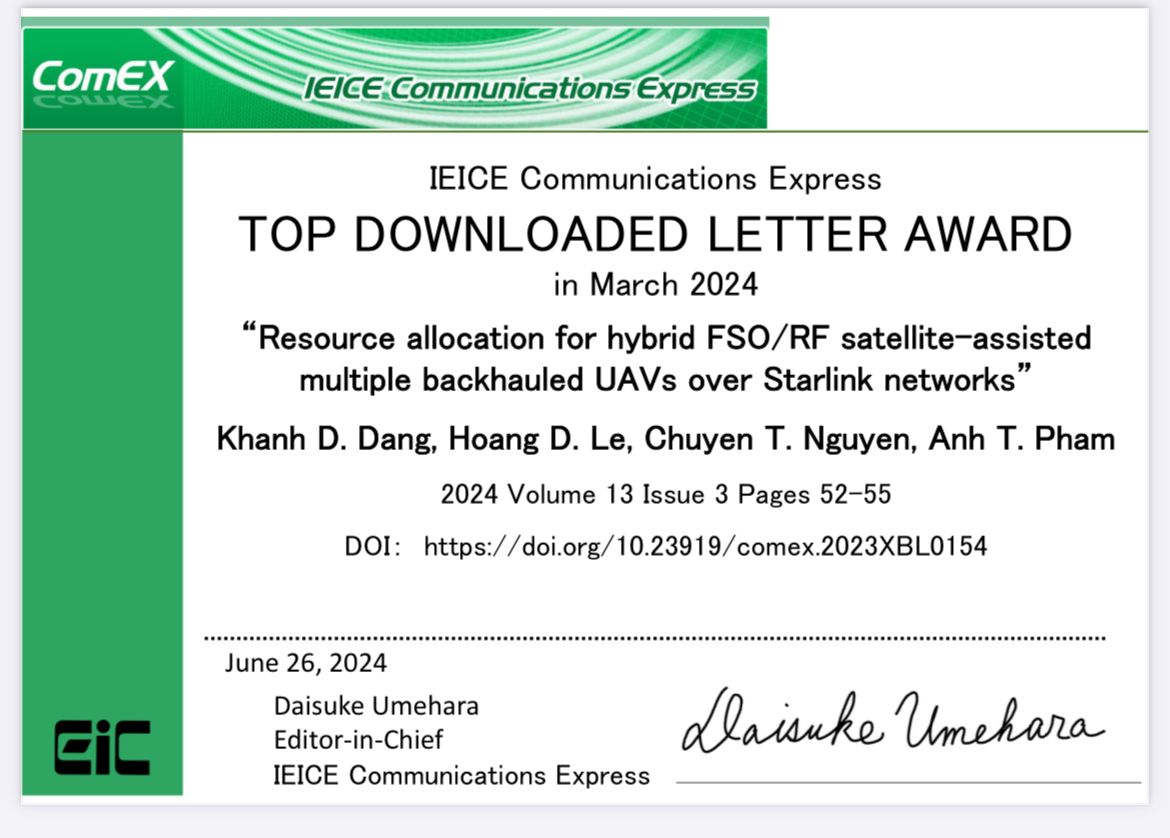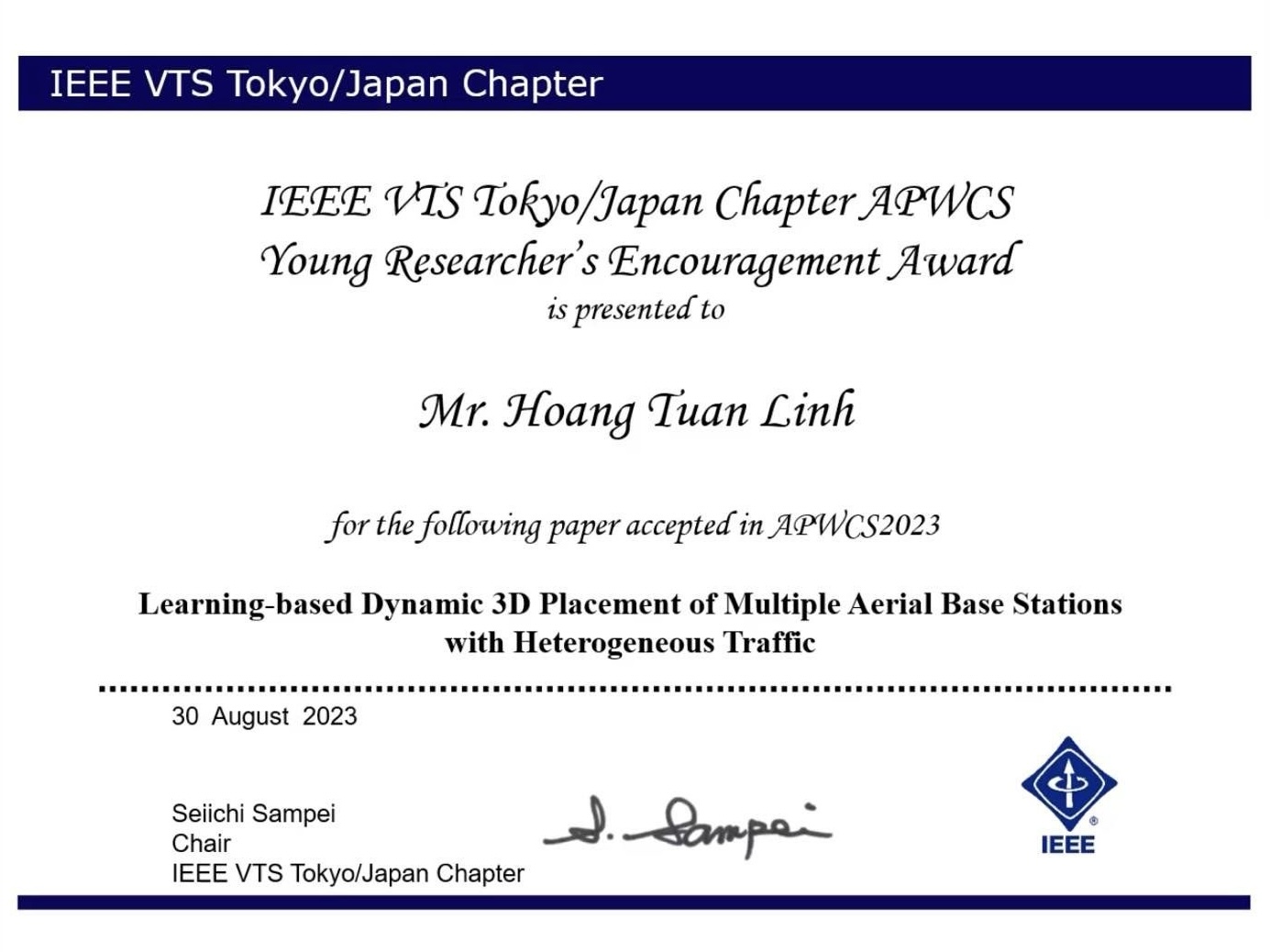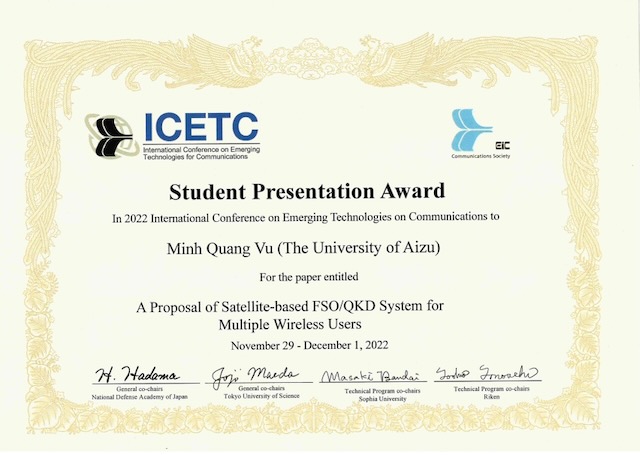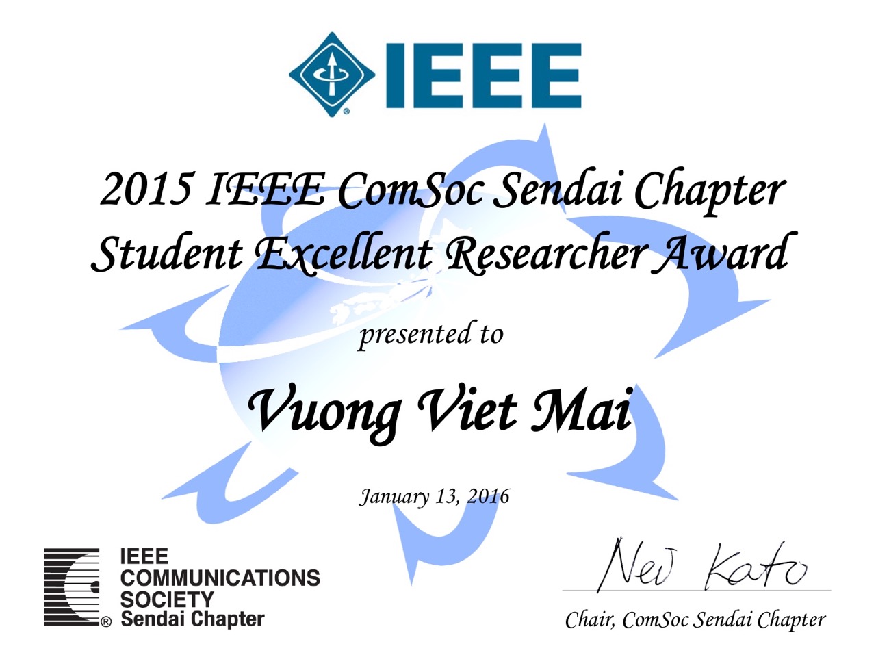 wins the 2023's IEEE ComSoc Sendai Chapter Student Excellent