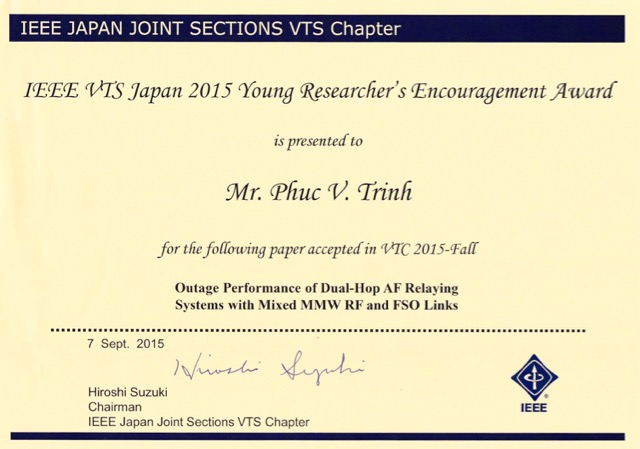 is awarded the IEEE VTS Tokyo Chapter's Young Researcher