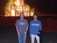 9月にちょうど大学のホームカミングがあり、そのなかでいくつかイベントがあったのですが、 とくにbonfireという大きな焚き火が印象的でした。点火方法も豪快でしたが、少し離れたところから 見ていても長くはその場にいれないほどの熱気に圧倒されました。