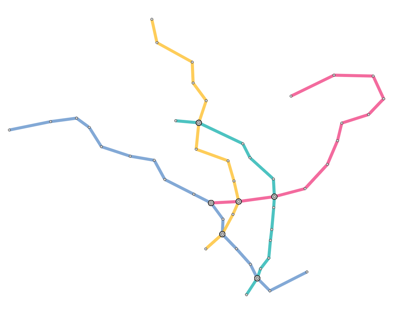 ここでは,我々のシステムで作成したいくつかの路線図設計の事例を示します.