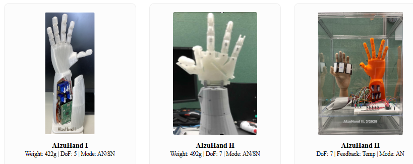 本プロジェクトでは、感覚統合とフィードバックセンシングを備えた高度なリアルタイム・ニューロモルフィック義手「AIzuHand」を開発します。加えて、キャリブレーション、リアルタイムフィードバック、機能的タスクを支援するユーザーフレンドリーなソフトウェアツールの研究も行います。
