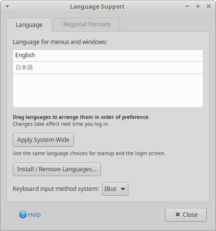 Language Supportで"IBus"が選択済みだった場合には、そのまま日本語入力が可能です。