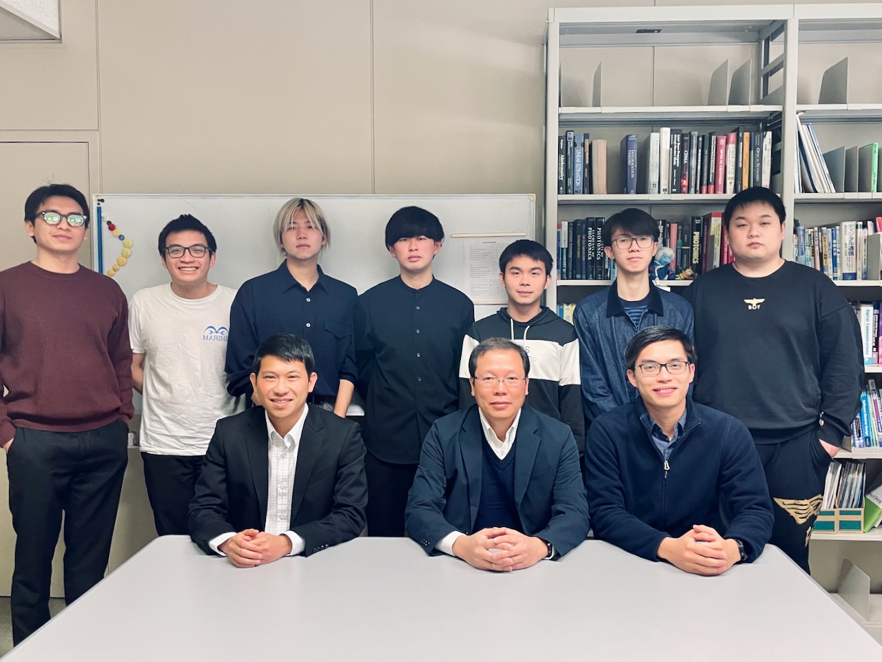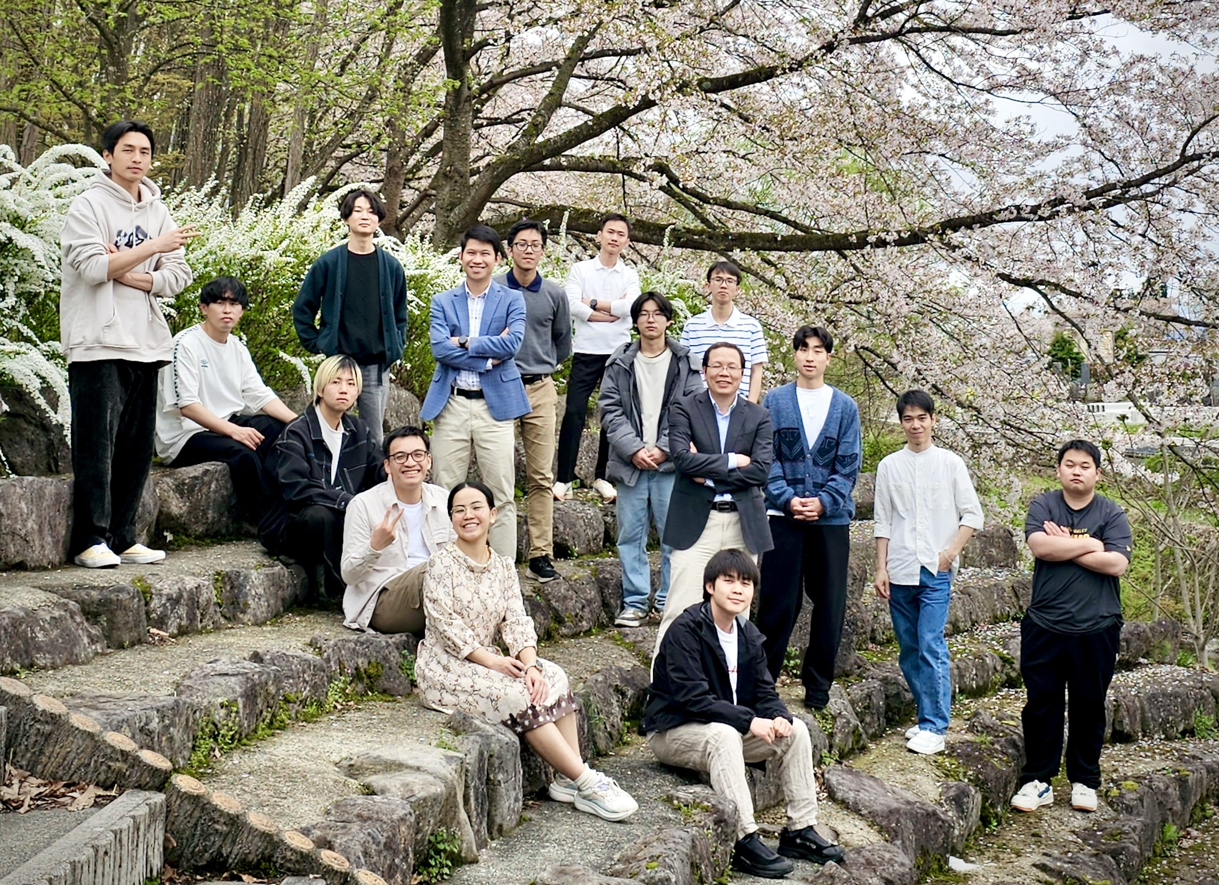 Khanh and Jinghui; seating: Yudai, Yuma, Cuong, Zalita, and Sora.