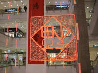 さて、私の滞在中丁度中国で最大のイベントの一つ旧正月がありました。新暦の正月(1月1日)より、盛大に祝われ、今年は 2月14日から約一週間続きました。写真のように「福」の文字が逆さになっている飾りを上海の至る所で見た事が印象的でした。 中国人の友達に逆さになっている理由を聞いたところ、中国語で、逆さまは「倒(dao)」。また、「到」という字も(dao)と発音 するので、「dao福」=「倒福」=「到福」で、「福の到来」を意味しているという。福という文字一つ取ってもとても面白いので、 まだまだあるであろう中国の言葉遊びの文化にもっと触れてみたいと思いました。