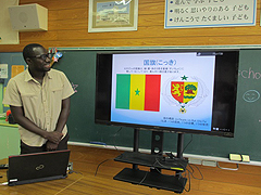 Mr. Abdoulaye Niang, 2nd year master student at the University of Aizu, from Senegal was invited to speak at the "English Club" of the Matsunaga Elementary School in Aizu Wakamatsu city on September 16th. He introduced history and culture, food, native dresses, and many things about Senegal. The school students enjoyed learning Senegalese culture and was able to find many attractiveness of Senegal through this class. OSIP (Office for Strategy of International Programs) is planning to expand such activities in the future.