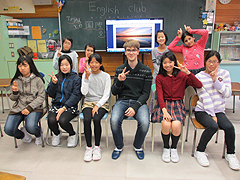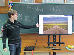 Mr. Peter Larson, exchange student from the Rose-Hulman Institute of Technology was invited to the "English Club" at the Matsunaga Elementary School in Aizu Wakamatsu city on November 11th, and introduced his native culture to promote global understanding. Mr. Peter Larson introduced a broad variety of American culture such as holidays and cities, foods and sports. The school children took part in the class actively with speaking and greeting in English. They learned about many attractions of USA with pictures. OSIP(Office for Strategy of International Programs) is planning to expand such activities in the future