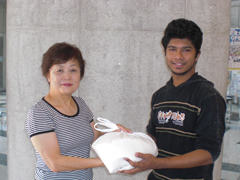 Donations of 16-kirogram bags of rice from living in Aizu-Wakamatsu City were made for international students studying at the University of Aizu through the Aizu Tonarigumi (International Cultural Relationship Citizens Association / Representative: Ms. Kayoko Iwahashi) on Thursday, August 10, 2009. Mr. Ishara Anupama received the rice from the Aizu Tonarigumi as a representative of international student body, and commented that "Since we have a lot of international students who eat rice as staple food, the donation of rice has been great support our life here in Aizu. I am appreciating the kindness of this contribution."