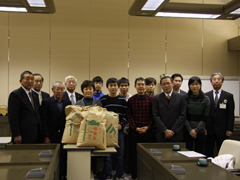 Ms. Igarashi and 4 representatives of farmers, who cordially provided the rice, visited the University to present the rice to our students on Wednesday, November 30. Associate Professor Pham, the Vice President of the Support Association for International Students of the University of Aizu (SAISUA), sent his sincere thanks for their kindness by saying, "I appreciate for your warm support. I hope this opportunity will increase our intercultural exchanges with the local citizens." The rice has been continuously donated since 2001, and has been great support for our international students.