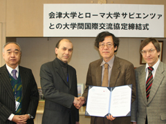 at the University of Aizu, affixed their signatures to the written agreement, which had been signed by relevant persons of Sapienza in Italy.