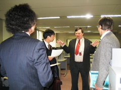 会談後、ホアン・ミン学長らは本学キャンパスを視察し、コン ピューター演習室や無音響室等の設備を確かめるだけでなく、 ヴァジェーニン上級准教授によるパソコンを用いたオーケストラ実演を聴くなど、本学の教育研究水準の高さに強い印象を受けたと述べ、 今後の交流強化に大きな期待が寄せられました。