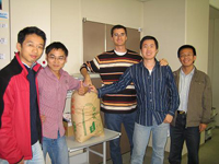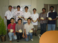 - 留学生を16グループ(1グループ3人)に分け、1袋30kgのお米が各グループに手渡されました。