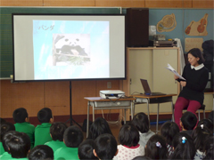 2月8日(金)、一箕小学校3年生の「総合的な学習の時間」に招かれたのは、大学院生のアルカディ・ズゴンニコフさん (ロシア)と周茜娜さん(中国)です。この授業では、留学生から聞く話から外国への関心と理解を高め、外国人との コミュニケーションを楽しむことを目的に行なわれ、留学生は出身国の小学校のこと、郷土料理などの生活・文化を 紹介しました。留学生が紹介した日本とは異なる外国の文化や習慣の違いに、小学生は驚きと関心にあふれた様子で 真剣に耳を傾けていました。