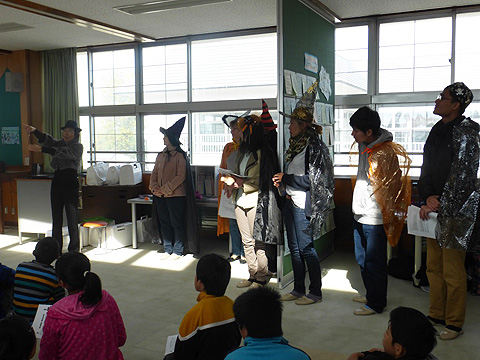 10月31日に会津若松市日新小学校の5年生と6年生の英語の時間に本学の留学生と日本人学生が招かれ、中国出身のYujie(李玉潔)さん、ベトナム出身のKhanh Dang Namさん、日本人学生の関口有加里さん、堀田悟史さん、原田明璃さん、折原彩香さんが子どもたちと英語で交流しました。