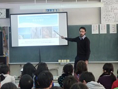 2015年2月27日に会津若松市一箕小学校の3年生の国際理解の授業に本学の留学生が招かれ、チュニジア出身のAkram Ben Ahmedさん、ベトナム出身のDuc Nguyen Vanさんが子どもたちに母国の文化を紹介しました。 ベトナムとチュニジアは飛行機でベトナムが5時間、チュニジアが16時間もかかるということを知り、子どもたちはベトナムとチュニジアがとても遠いことに驚いていました。