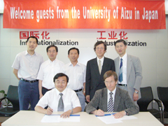 ハルピン工業大学ソフトウェア学院/コンピュータ科学技術学院と会津大学コンピュータ理工学研究科間の教育・科学技術における相互理解と協力の促進を目的とした交流協定締結のための訪問で、 ハルピン工業大学Xiaofei Xu学院長と本学のニコライ・ミレンコフ副学長兼研究科長が協定書に調印しました。調印式には、ハルピン工業大学との交流窓口を務めた程子学教授・産学イノベーションセンター長も 同席しました。
