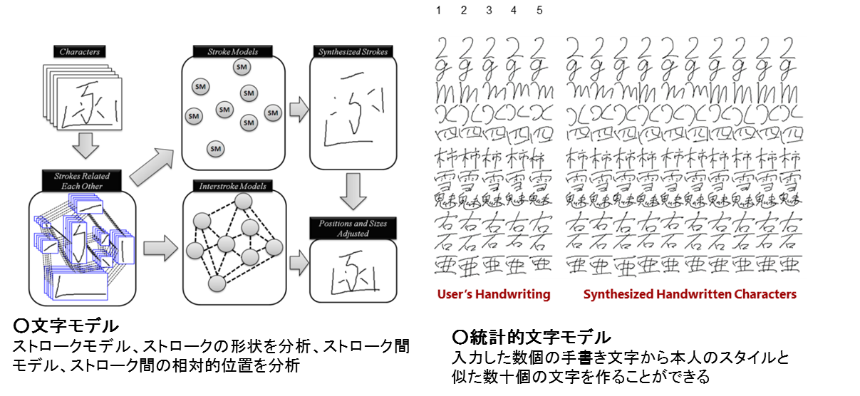 - 統計的手法を用いて個人の筆跡を模擬した文字を生成する手法