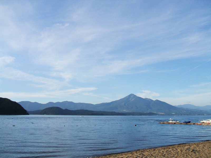 View of Mt. Bandaisan from Lake Inawashiro in summer